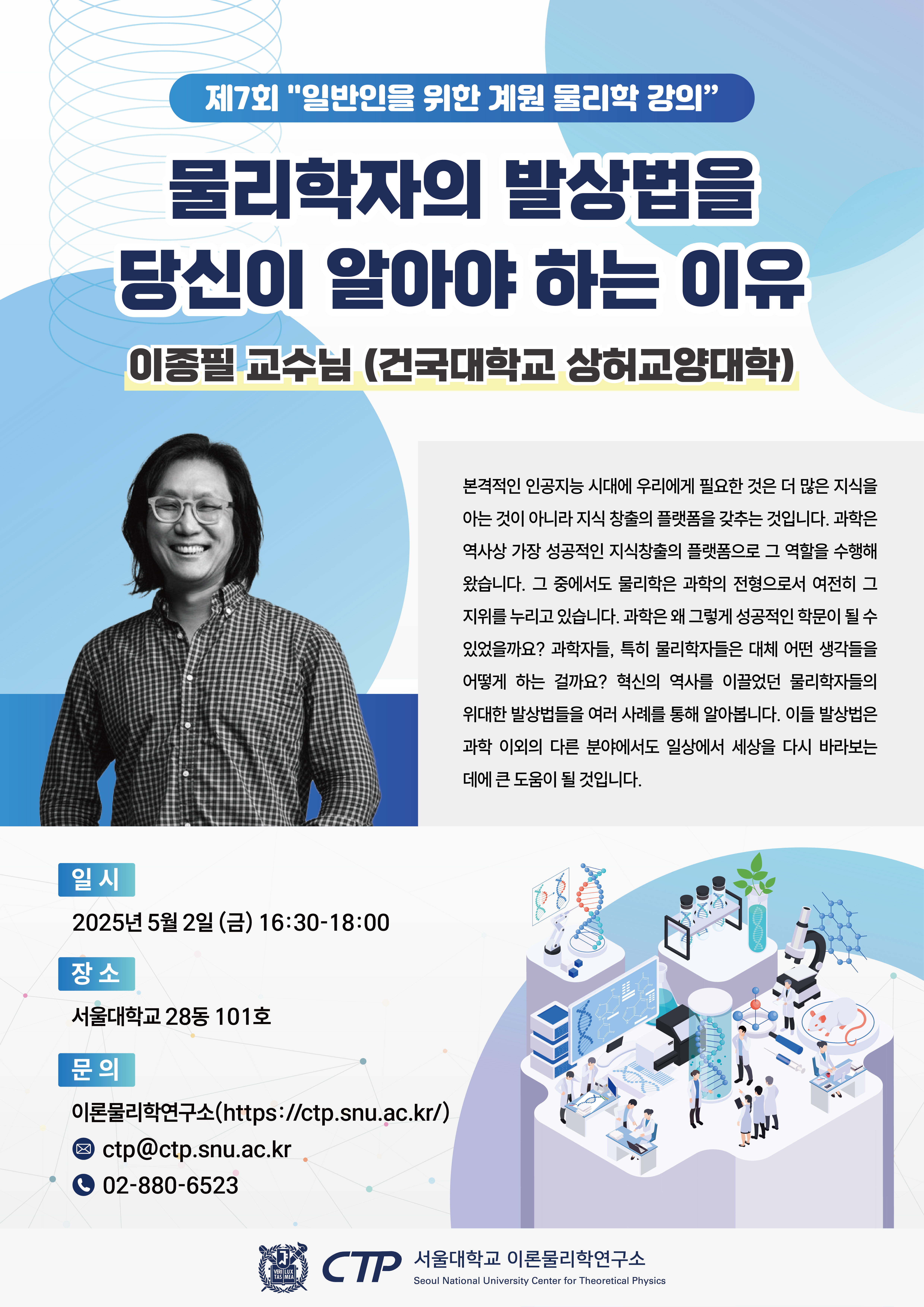 제 7회 일반인을 위한 계원 물리학 강의 : 물리학자의 발상법을 당신이 알아야 하는 이유 (포스터)