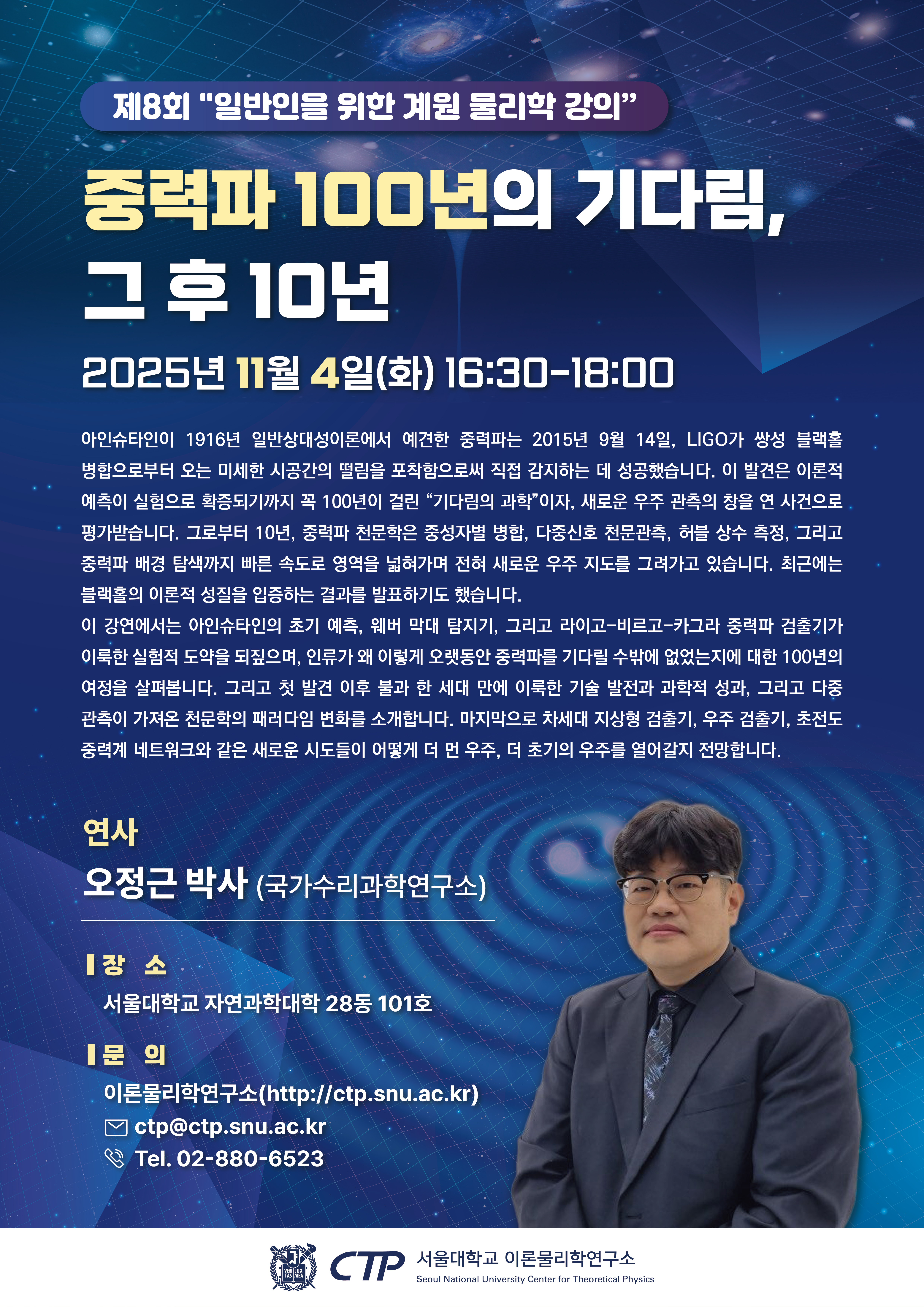 제 8회 일반인을 위한 계원 물리학 강의 : 중력파 100년의 기다림, 그 후 10년 (포스터)